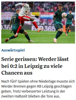 So berichteten wir vor zwei Wochen (vor der Länderspiel-Pause) voller Euphorie. Doch der Dämpfer kam postwendend, vor allem wenn man die Einzelbewertungen der Werder-Spieler gegen RB Leipzig betrachtet – mit Ausnahme unseres guten Torhüters Mio Backhaus: