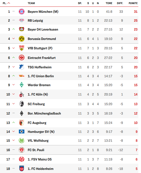 … und Werder steht immer noch mit Blick auf das Torverhältnis ziemlich weit unten!